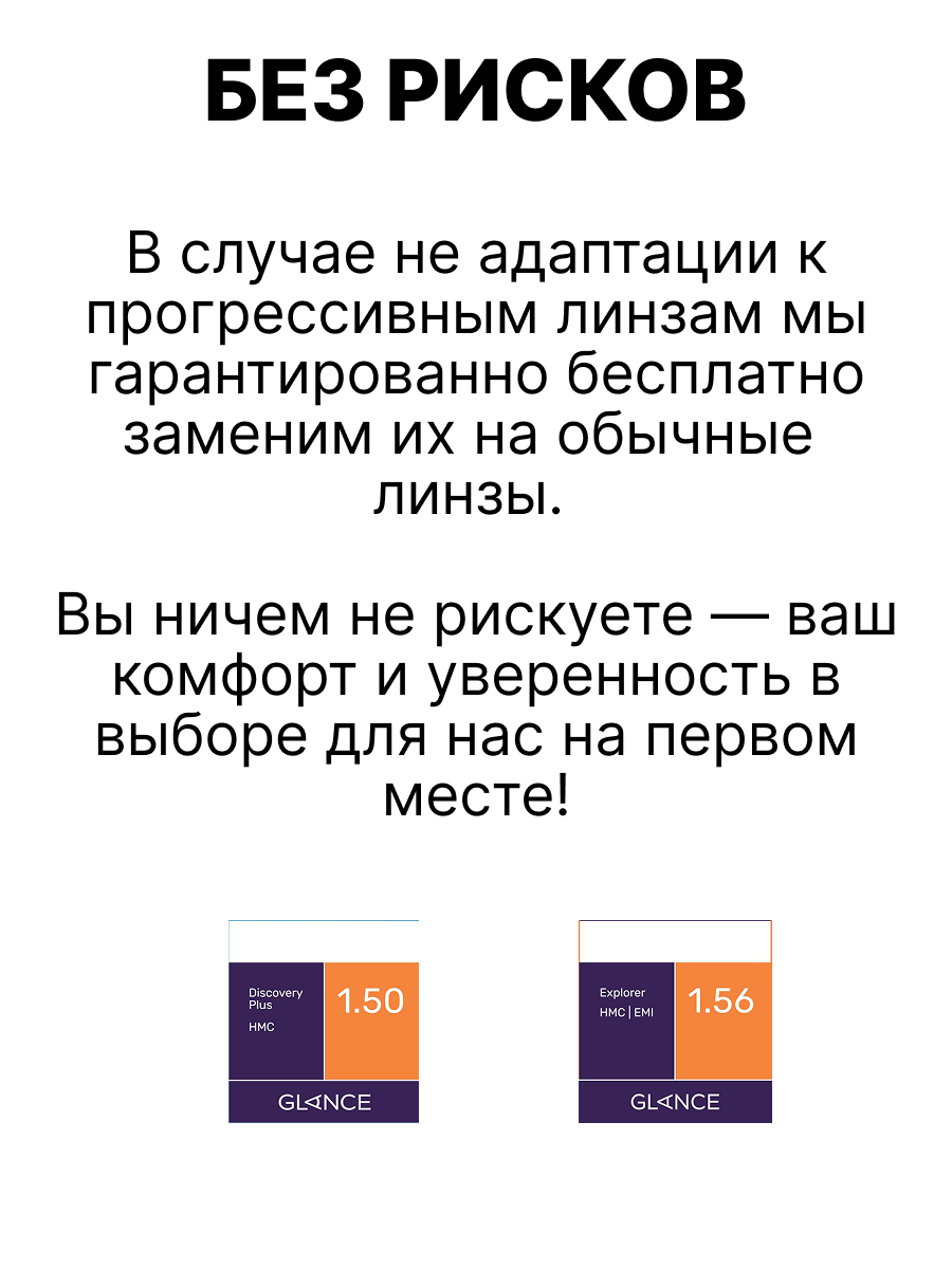 Прогрессивные полимерные линзы из полимер CR-39 с упрочняющим и просветляющим покрытиями.