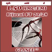 Бифокальная Glance 1.50 Bifocal FT HMC/EMI линза изготовлена из органического полимера CR-39, выполненного из мономера аллилдигликолькарбонат, катализатора и UV - абсорбера, со стандартным коэффициентом преломления ne = 1.50.